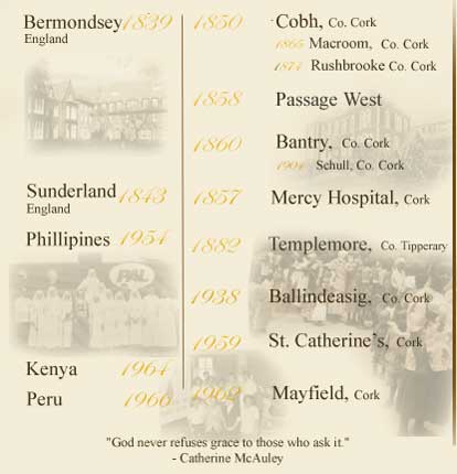 Catherine McAuley along with five companions – Mary Clare Moore, Josephine Ward, Vincent Deasy, Teresa White and Anastasia McGawley – arrived in Cork City on the steamer “Hercules” on 6th July, 1837. They were escorted to Rutland Street by a Fr. O’Connor, where they were to live and work for the next fifteen years. Once a fashionable quarter, Rutland Street in 1837, had little of its former elegance. The house itself was a gloomy, sombre building, very much in keeping with convents of the time. However, the Sisters began immediately to visit the poor of the parish and soon they became known as the “sick poor order”. They also began a Pension School in a large room in the house in 1838.
